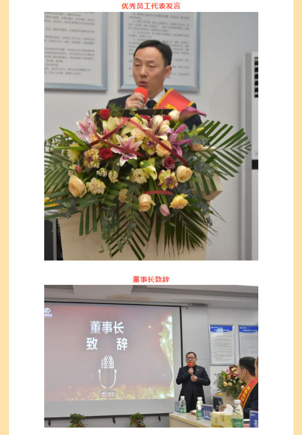 年會(huì)開始,董事長(zhǎng)上臺(tái)致辭,共同回顧過(guò)去一年的辛勤與收獲,展望未來(lái)的機(jī)遇與挑戰(zhàn)。過(guò)去一年,全體員工團(tuán)結(jié)協(xié)作,攻堅(jiān)克難,取得了令人矚目的成績(jī)。董事長(zhǎng)代表公司管理層,向每一位辛勤付出的員工表示衷心的感謝和崇高的敬意。希望未來(lái),繼續(xù)發(fā)揚(yáng)拼搏精神,共創(chuàng)更加輝煌的明天。最后,對(duì)全體員工表達(dá)了真摯的新年祝福。